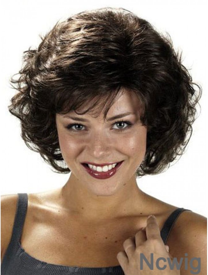 With Bangs Cheap Wavy Black Short Human Hair Lace Front Wigs