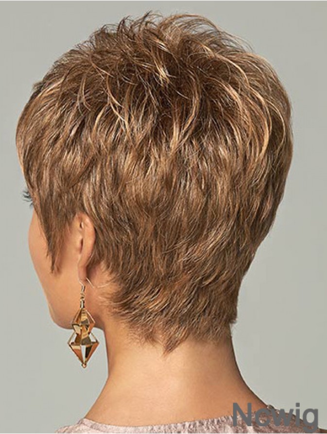 Capless Brown 4 inch Short Layered Synthetic Wigs