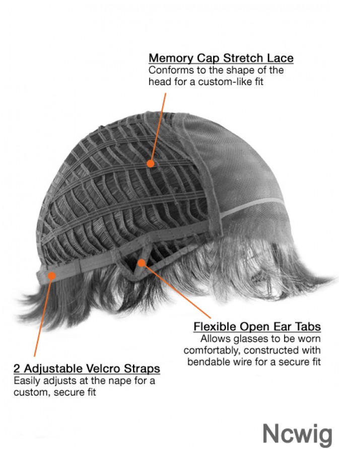 Here's the WOW factor! Here are OPEN WEFTS on incredibly slim strips of stretch material that actually mold to the shape of your head. Within an hour, this wig will memorise the contours of your head.