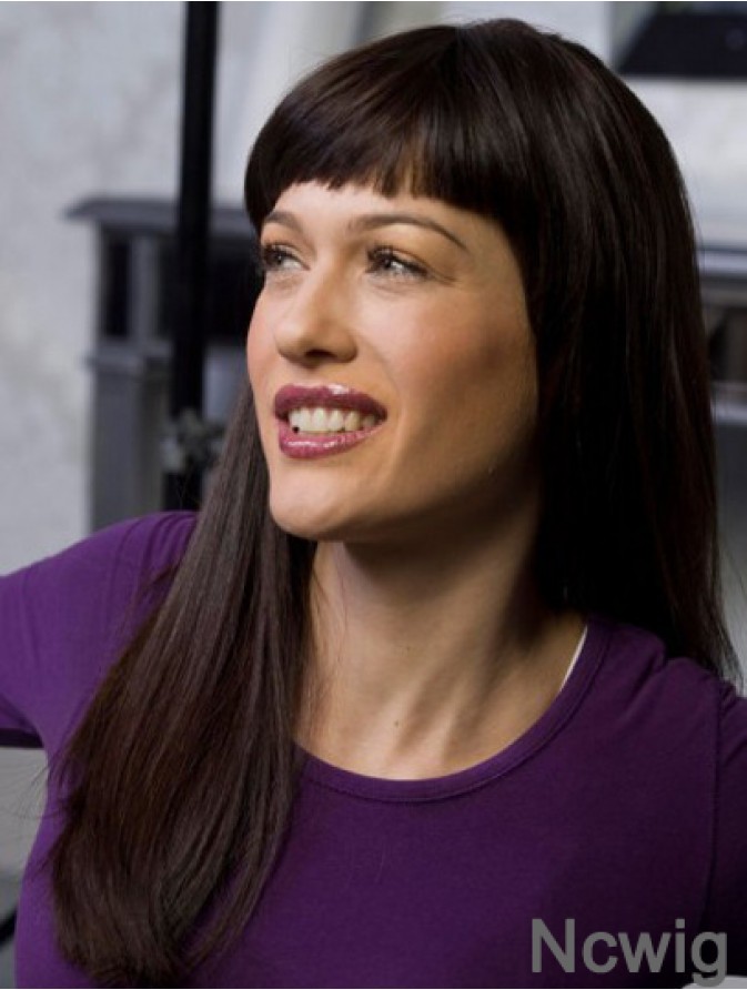 Soft Auburn Straight With Bangs Long Wigs