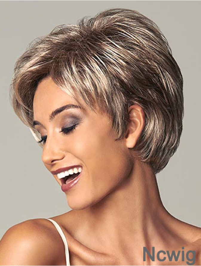 Synthetic Monofilament 8 inch Layered Wavy Grey Wigs Short
