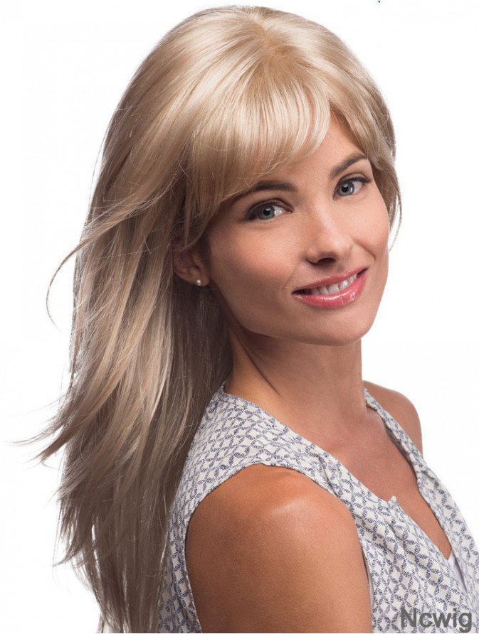 Long Blonde Human Hair Wigs Blonde Color Straight Style Layered Cut