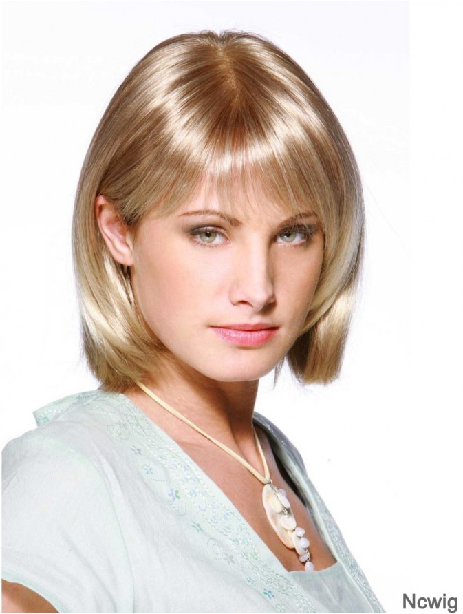Long Bob Wigs With Bangs Monofilament Blonde Color Shoulder Length