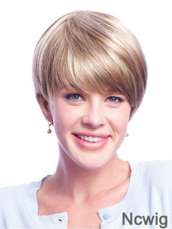 Wigs Human Hair Blondes With Monofilament Layered Cut Short Length