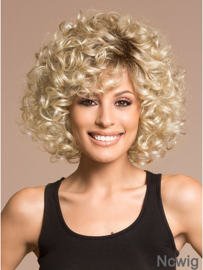 Blonde Wigs For Women Chin Length With Bangs Curly Style