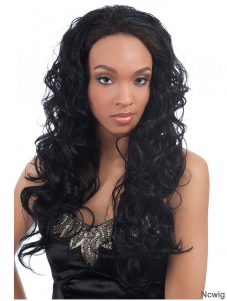 Wavy Brazilian Remy Hair Black Long Gorgeous 3/4 Wigs