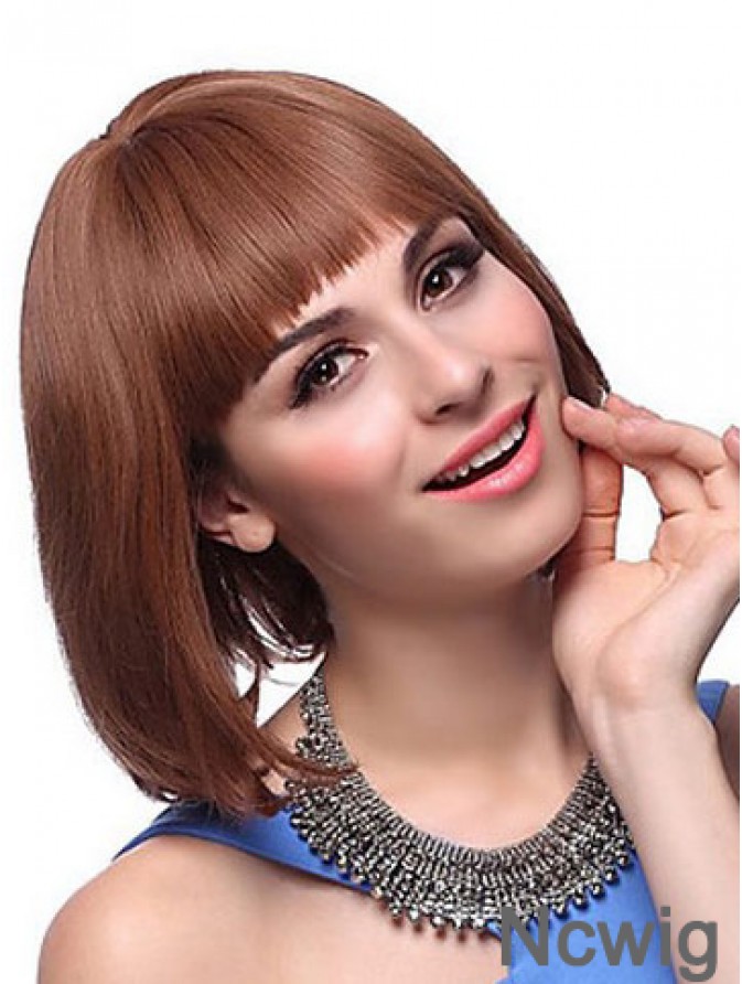 Brown 12 inch With Bangs Chin Length Perfect Monofilament Wigs